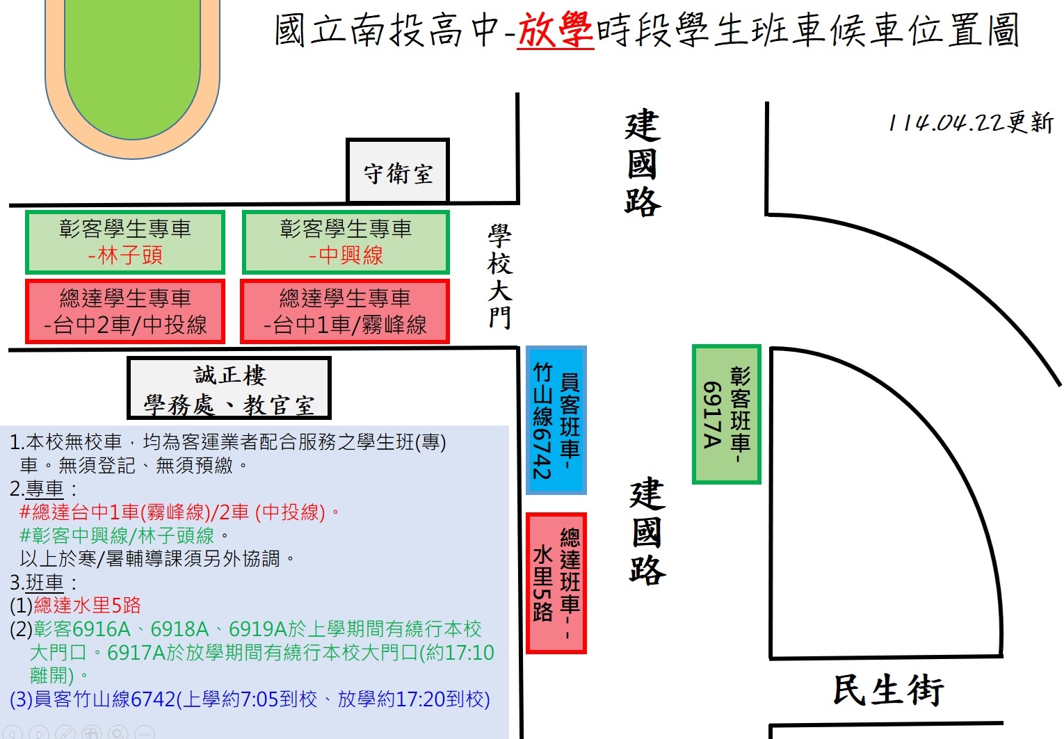 114.07.15 | 除專車以外,欲查詢住家往返學校班車,可利用GOOGLE MAP用"大眾運輸"方式利用"規劃路線"查詢 |